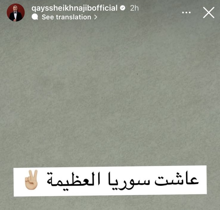بينما عبّر مكسيم خليل عن فرحته قائلاً، “كان أسد علينا هرب محتفظاً بحق الرد.. إفرحي سورية عدتي حرة”، مشاركاً مجموعة من القصص عبر إنستقرام.