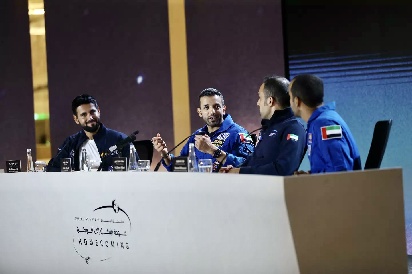 حفاوة استقبال واحتفال للتاريخ، خصت به دولة الإمارات العربية المتحدة وقيادتها الرشيدة، رائد الفضاء الإماراتي سلطان النيادي بمطار أبوظبي، بعد نجاحه في إتمام أطول مهمة فضائية في تاريخ العرب امتدت لستة أشهر. وعبر النيادي خلال المؤتمر الصحفي عقب مراسيم الاستقبال عن امتنانه البالغ للاستقبال الذي حظي به من طرف صاحب السمو الشيخ محمد بن زايد آل نهيان رئيس دولة الإمارات العربية المتحدة، وصاحب السمو الشيخ محمد بن راشد آل مكتوم نائب رئيس الدولة رئيس مجلس الوزراء حاكم دبي، منوهاً بدعم قيادة الإمارات الرشيدة وتوجيهاتها، وإيمانها المطلق في كل خطوة.