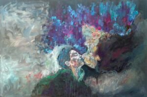 – لوحتي هي أناي الملونة والمتعددة،أحياناً أرغب أن أحتفل في محيطي بمجنون مثلي، فيحدث الكثير من الالتباس نحو هذة المسائل، مسألة أن تشرح ذاتك أو تخففها من طبقات ثقيلة، مسألة مربكة و ربما زاد تعقيدها بعد ممارسة الفن التشكيلي ومع إنجاز العديد من المشاريع وتراكماتها، لوحتي هي أنا والآخر وأنا مكان الآخر و الآخر في مكاني، عدا عن ذلك لا أجيد الالتزام بالمدارس فالمدارس ماتت.