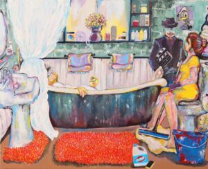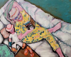 أبدأ اللوحة بالتجمل والتزين، أنا على موعد مع ( …) تلك هي إحدى السبل التي تجعلني أقفز من مقام العزلة إلى مقام الحميمية وعلى عكس الطقس الشائع.. لا استمع إلى الموسيقى والأغنيات، فهي تثير الشجون،استمع إلى الحكي والحكائين لمؤانستي في سهرتي الفنية.