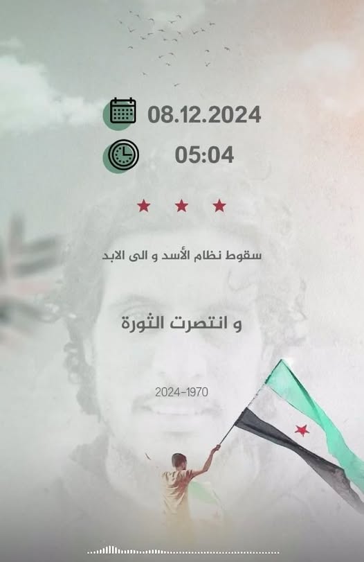 وكتب النجم عمر السومة: “ألف مبروك لسوريا وألف مبروك لكل السوريين ومبروك لهذا الشعب الصمود، والله يرحم شهدائنا ويسكنهم فسيح جنانه. وان شاء الله تكون بداية لمرحلة جديدة من الوحدة والإعمار والازدهار، وبتبقى دائماً سورية_حرة 2024/12/8”.