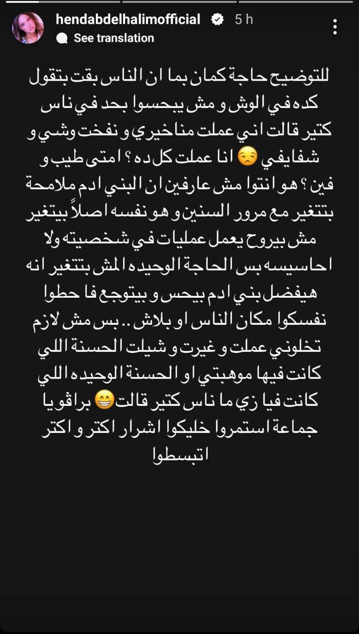 • هند عبد الحليم بعد جراحة تجميل “محدودة”: لم أنفخ الشفاه ولا الخدود