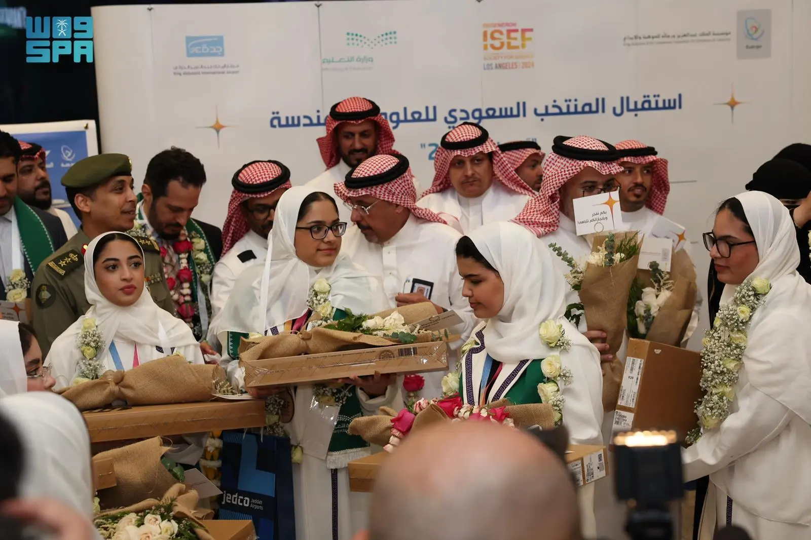 وصل المنتخب السعودي للعلوم والهندسة اليوم إلى أرض الوطن، وذلك بعد تحقيقه 27 جائزة, منها 18 جائزة كبرى و9 جوائز خاصة، في معرض ريجينيرون الدولي للعلوم والهندسة “آيسف 2024” الذي شهد منافسة علمية عالية المستوى بين 1700 موهوب وموهوبة من أكثر من 70 دولة، والذي أقيم في مدينة لوس أنجلوس الأميركية، خلال الفترة من 10 إلى 18 مايو الجاري، وشاركت فيه المملكة، ممثلة بمؤسسة الملك عبدالعزيز ورجاله للموهبة والإبداع “موهبة” ووزارة التعليم.