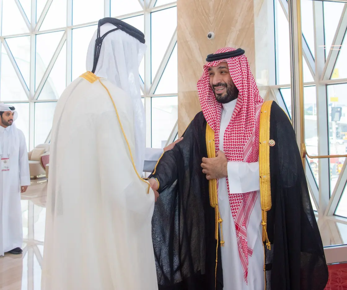 واستقبل أمير قطر تميم بن حمد آل ثاني، ولي العهد السعودي بعد وصوله الدوحة للمشاركة في القمة الخليجية.