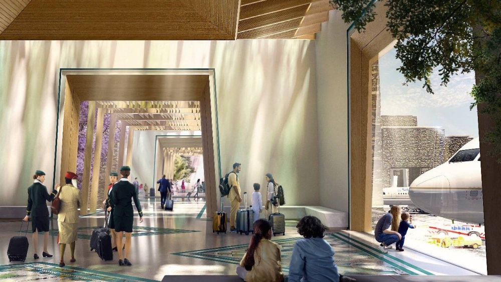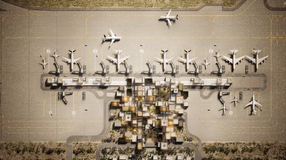 ويتميز المطار الجديد بتصميم معماري لا يتقادم عبر الزمن، في ظل تقنيات متطورة، من خلال توظيف إستراتيجيات التصميم البيئية المستدامة، لإيجاد بيئةٍ داخلية قابلة للتكيف والانسجام مع الطبيعة، وتحاكي الثقافة السعودية، لتوفر تجربة سفر مميزة، بكفاءة عالية تسهم بتوفير خدمات انسيابية للزوار والمسافرين.