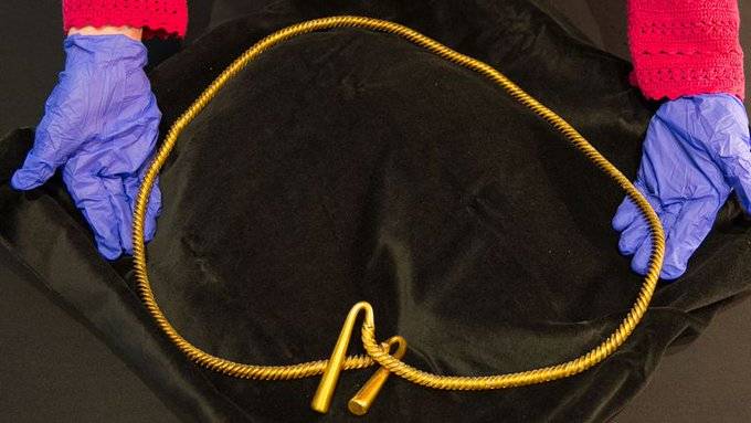 وتعتبر حلقة العنق الذهبية والتي عثر عليها أحد كاشفي المعادن، في حقل محروث شرقي كامبريدج عام 2015، أفضل مثال أثري تم العثور عليه في إنكلترا منذ أكثر من قرن.