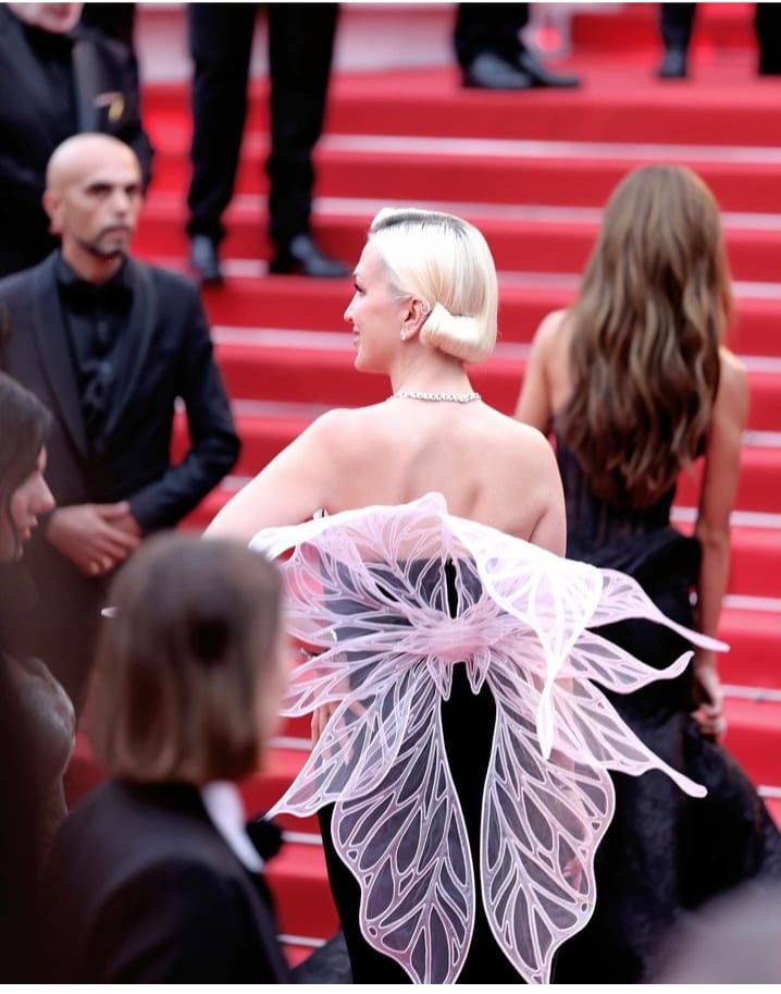 تحضر مصممة الأزياء الشهيرة يوليا يانينا إلى مهرجان كان السينمائي بدورته 77 لتقص فيلمها الخاص على السجادة الحمراء في مجال إبداع الموضة، لتكون هي العارضة الأنيقة برفقة مديرة أعمالها داشا يانينا.