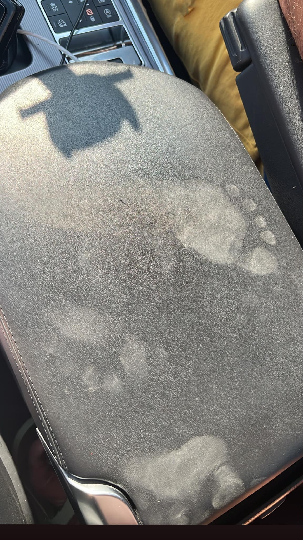 ميريام فارس بين رمل وبحر وأثار أقدام على فرش السيارة، ترسل فكرة عن نشاطاتها مع عائلتها. تجيد صياغة يومياتها بطريقة فنية وتكون الصورة خلابة لما تقوم به وما ترتديه.