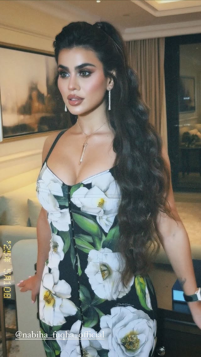 اختارت يومي لحدث زفافها إطلالة أنيقة تعكس ذوقها الرفيع في عالم الموضة والأزياء. ارتدت فستاناً متوسط الط length من تصميم دار “دولتشي آند غابانا” الفاخرة، مزيناً بطباعة وردية على قماش مطاطي يلتف بإتقان حول جسدها. تولت مهمة إعداد مكياجها خبيرة التجميل المعروفة نبيهة الفقهاء، التي أبدعت في إبراز جمال العروس بمكياج متناسق وأنيق.