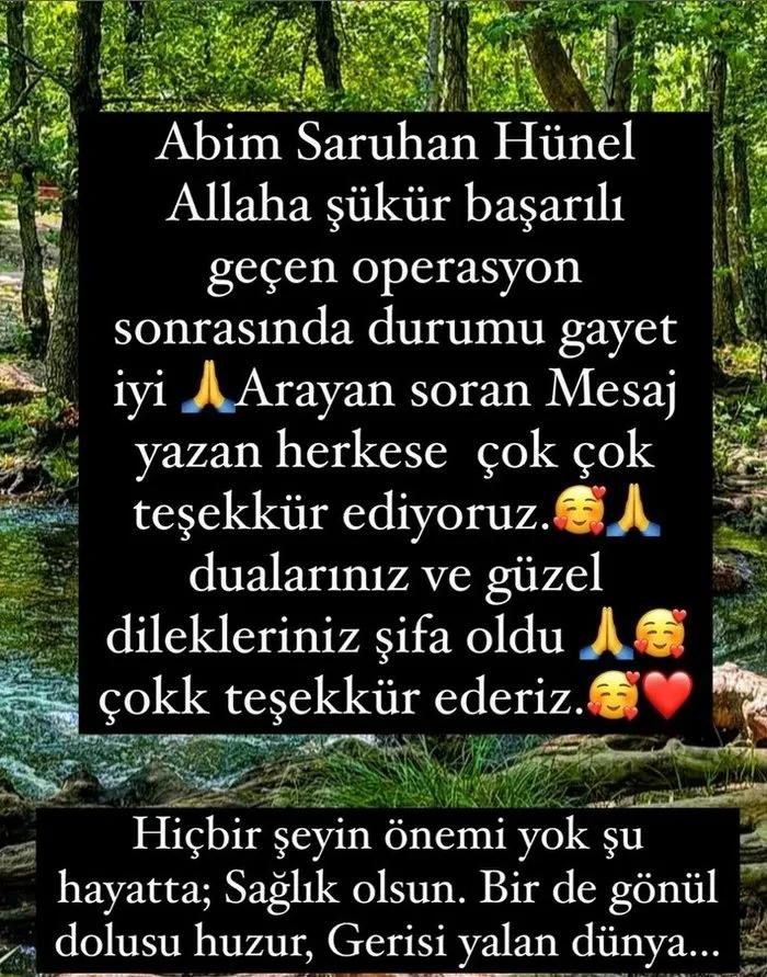 وكانت أسلي قد طلبت من الجمهور منذ أيام الصلاة لأخيها في رسالة عبر إنستقرام قالت فيها ما معناه : “أخي العزيز ساروهان هونال يعاني من مشاكل في القلب منذ فترة، وقد تم نقله إلى جراحة القلب هذا الصباح، وسنكون سعداء إذا صلى أحباؤنا له، دعواتكم من السماء والأرض، تصبحون على خير بإذن الله”.