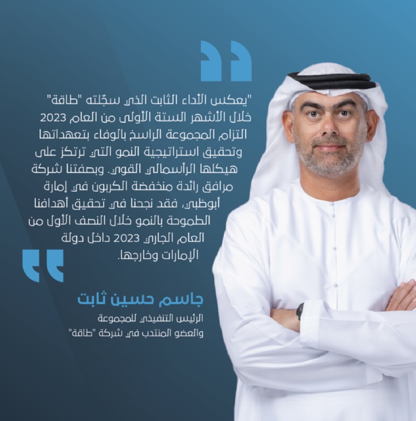 وفي هذا السياق، صرّح معالي محمد حسن السويدي، رئيس مجلس إدارة شركةأبوظبي الوطنية للطاقة (طاقة)”: “خلال مسيرتها نحو النمو الاستراتيجي في النصف الأول من العام الجاري 2023، واصلتطاقةتحقيق القيمة لمساهميها وأصحاب المصلحة لديها، فسجّلت أداءً مالياً قوياً وثابتاً، وحافظت على تصنيفها الائتماني بدرجةاستثمار، وضمنت تحقيق عوائد جيدة لمساهميها عبر سياستها لتوزيع الأرباح. وتجسيداً لالتزامها بمواصلة النمو، أعلنت الشركة أنها ستوسّع محفظة أصولها عبر  الاستحواذ على شركةحلول المياه المستدامة القابضة، وستُسهم هذه الصفقة في توسيع نطاق أعمالطاقةفي مجال المرافق الخاضعة للتنظيم، وترسيخ مكانتها لتصبح شركة متكاملة في مجال المياه ومعالجة المياه العادمة. كما حققتطاقةنمواً على الصعيدين المحلي والدولي خلال النصف الأول من عام 2023، وقد كان لقطاع الطاقة المتجدّدة نصيب وافر من هذا النمو، فبعد أن استثمرت في شركةمصدر، تمكّنت “طاقة” من تخطي هدفها المنشود للعام 2030 والمتمثّل في زيادة نسبة الكهرباء المُولَّدة من مصادر الطاقة المتجدّدة لتصبح 30 ٪؜ من إنتاجها. وبذلك تعكس الشركة التقدم والنمو في قطاع المرافق، مستندةً إلى التزامها الراسخ بالمعايير البيئية والاجتماعية والحوكمة”.