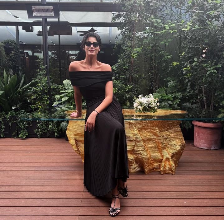 طالما تختار ريم السعيدي الأثواب الحرة المريحة بما يخدم أمومتها وحرية حركتها كما في الثوب الأسود الطويل المفتوح الكتفين. وكأن بها تنتهج الوان الأناقة في البساطة.