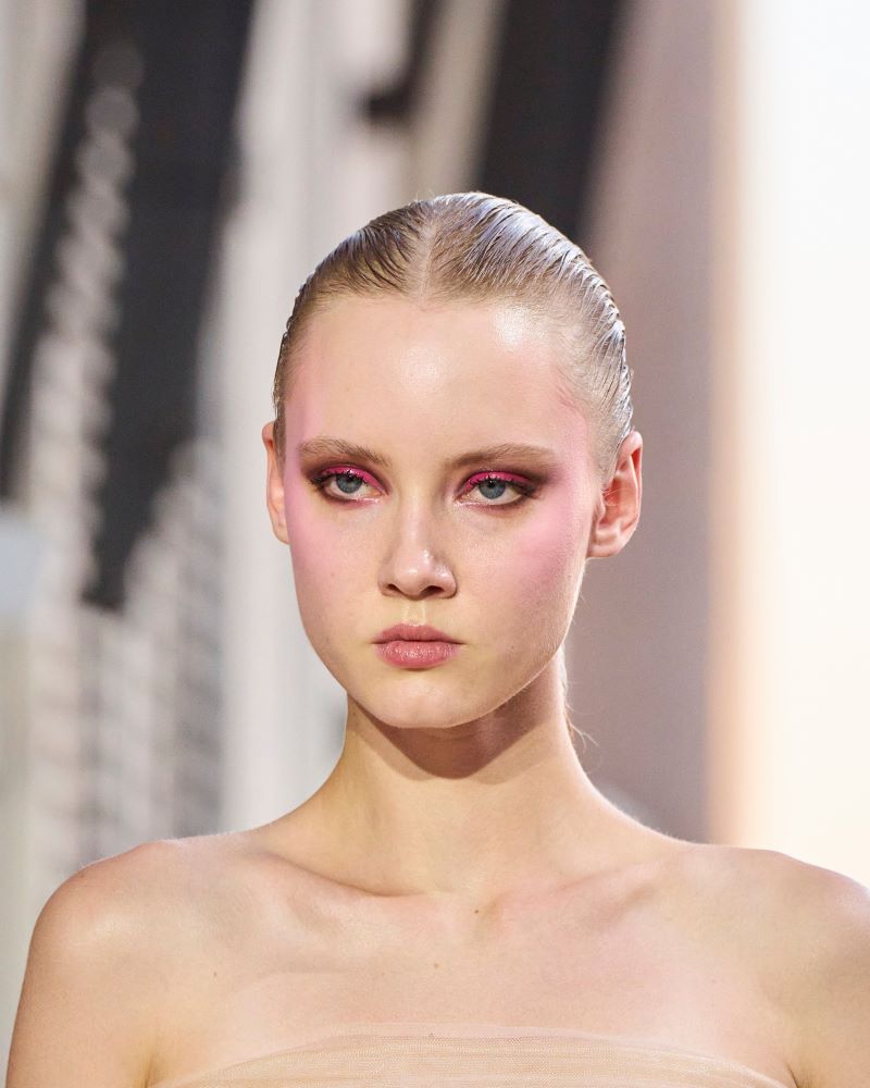 الخدود هذا الموسم لا تقل أهمية عن الشفاه والعيون إذ يبرز البلاشر الزهري البارز كصيحة لافتة. يتم تطبيقه بكثافة نسبية على تفاحتي الخدين والصدغين وحول العين لخلق إطلالة مفعمة بالانتعاش والحيوية.