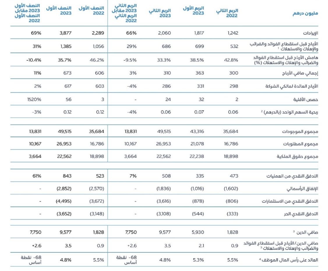 310 مليون درهم إجمالي صافي الأرباح في الربع الثاني من العام 2023