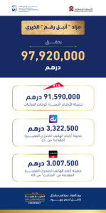 شهد مزادأنبل رقمالخيري الذي أُقيم مساء السبت 08 أبريل 2023 في فندق فور سيزونز جميرا بدبي، بيع أغلى رقم لوحة مركبة في العالم بمبلغ 55 مليون درهم، عن رقم لوحة المركبة 7 فئة P دبي، محطماً الرقم السابق الذي بلغت قيمته 52,2 مليون درهم. المزاد الذي نظمتهمؤسسة مبادرات محمد بن راشد آل مكتوم العالميةبالتعاون معالإمارات للمزاداتوبدعم منهيئة الطرق والمواصلاتفي دبي  وشركتياتصالاتودو، نجحت مساء يوم السبت في تحصيل 97,920 مليون درهم، انطلاقاً من بيع 35 رقماً مميزاً، 14 رقماً منها يخُص لوحات مركبات تابعة لـطرق دبي، بالإضافة الى 11 رقم هاتف ماسي لـاتصالاتو10 أرقام هواتف مميزة لشركةدو“. حيث حققت المزايدات الخيرية على الأرقام المميزة للوحات المركبات قيمة إجمالية بلغت 91,590 مليون درهم، فيما بلغت قيمة الأرقام الماسية المقدمة مندو” 3,322,500 درهم، والأرقام المميزة المقدمة مناتصالاتما قيمته 3,007,500 درهم.