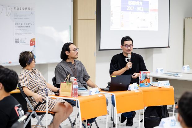 أول محاضرة استجابة في الحرم الجامعي لمهرجان كاوشيونج للشعر العالمي، عند دمعت الشباب المتحمس في حرم جامعي ذي جو ذكوري للغاية، أخذنا الطلاب لكتابة القصائد معًا.