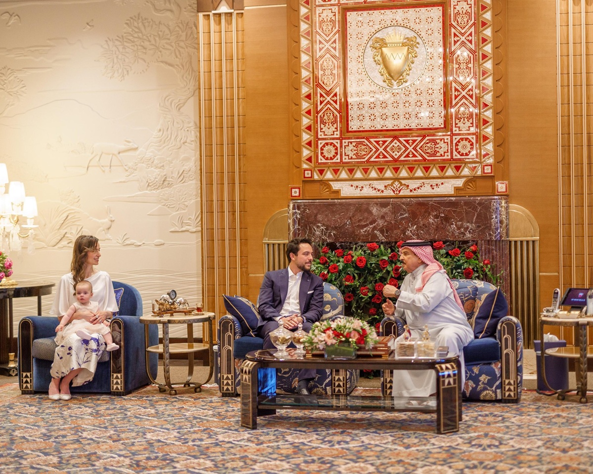 وخطفت الأميرة رجوة أخيراً أيضاً الأنظار بإطلالتها الأنيقة والبسيطة خلال لقائها والأمير الحسين العاهل البحريني الملك حمد بن عيسى آل خليفة، خلال زيارة إلى المنامة ترافقهما طفلتهما الأميرة إيمان، إذ ارتدت تنورة بيضاء مزدانة بطبعات أزهار باللون البنفسجي، ونسّقتها مع بلوزة ناعمة باللون الأبيض، في مظهر أنيق يعكس رقيّها وبساطتها.