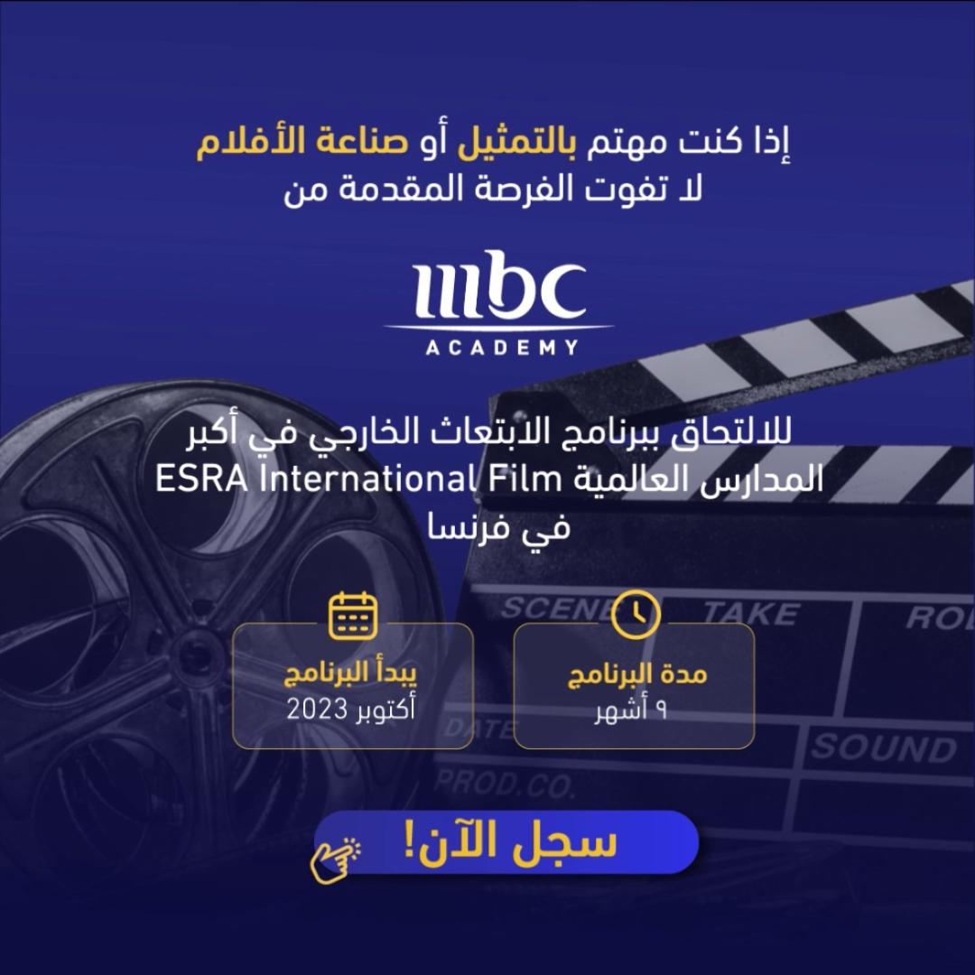 في هذا السياق، قالت زينب أبو السمح، الرئيس التنفيذي لـ “أكاديمية MBC” والمدير العام لـ “استوديوهات MBC” السعودية: “يتيح برنامج الابتعاث الخارجي هذا العام الالتحاق بمدرسة ESRA الدولية للسينما في فرنسا بكل من مدينتي نيس وكان، وقد اخترنا هذه المدرسة تحديداً لما تحظى به من شهرة عالمية بتخريج نخبة من المهنيين الرائدين في صناعة الأفلام من الحائزين على جوائز عالمية بما فيها الأوسكار”. وحول ما يقدمه البرنامج للمبتعثين، أوضحت أبو السمح: “ان مدة الدراسة 9 أشهر، يحصل خلالها المبتعثون على محاضرات نظرية، وورش عملية تطبيقية، إلى جانب العمل على مشاريع متخصصة في صناعة الأفلام والتمثيل، ناهيك عن احتمالية توفير فرص للتدريب لمدة شهرين في نخبة من الشركات العالمية المتخصصة في هذا القطاع لخريجي البرنامج المميّزين، بموازاة إتاحة الفرصة أمامهم لحضور مهرجان كان السينمائي ومهرجان نيس للأفلام القصيرة، في تتويجٍ لما اكتسبوه من خبرات ومعارف.”