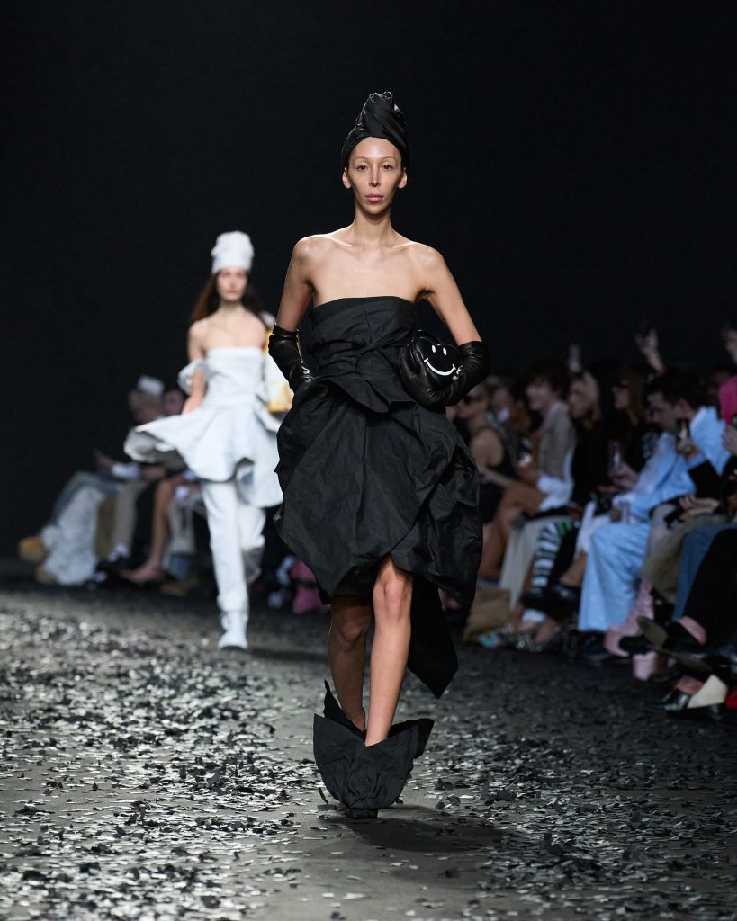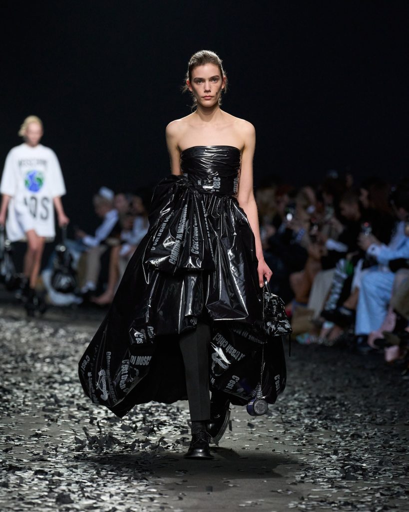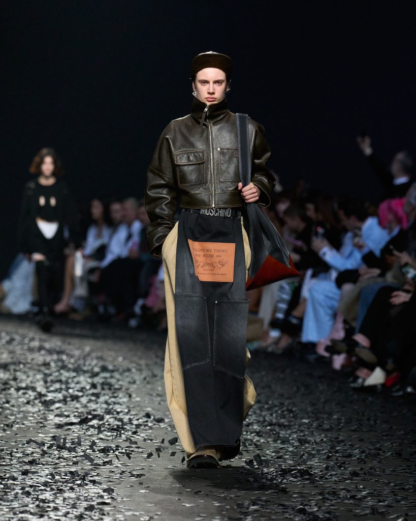الجدية الساخرة فكرة تسطع أمامك خلال متابعة عرض Moschino لمجموعة خريف / شتاء 2025 خلل اسبوع الموضة في ميلاانو ، فهو يحول مفهوم كيس الزبالة إلى حقيبة ويقصقص القمصان ويرقع السراويل ويمسح البدلات بخيوط الدهن . يصنع الجمالية من المهملات ويؤلف رؤية مبتكره ذات رسالة.