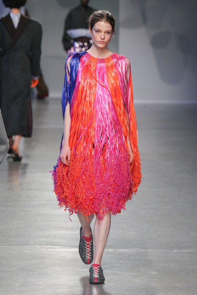 ظهرت اللمسات السريالية المميزة لزومر في جميع أنحاء المجموعة. فهناك الفستان المصنوع من الشريط والياقات على حواف البنطلون ، وكانت الأحزمة على طراز cummerbund ، المزينة بسلاسل رئيسية وسحر ، بمثابة “حقائب خيالية” مما اعطى هوية غريبة ومضحكة.