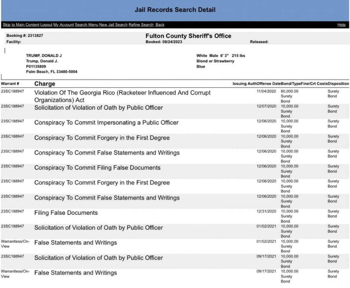 وأكدت شرطة جورجيا في بيان، أنه تم التقاط صورة “جنائية” لترمب داخل السجن.