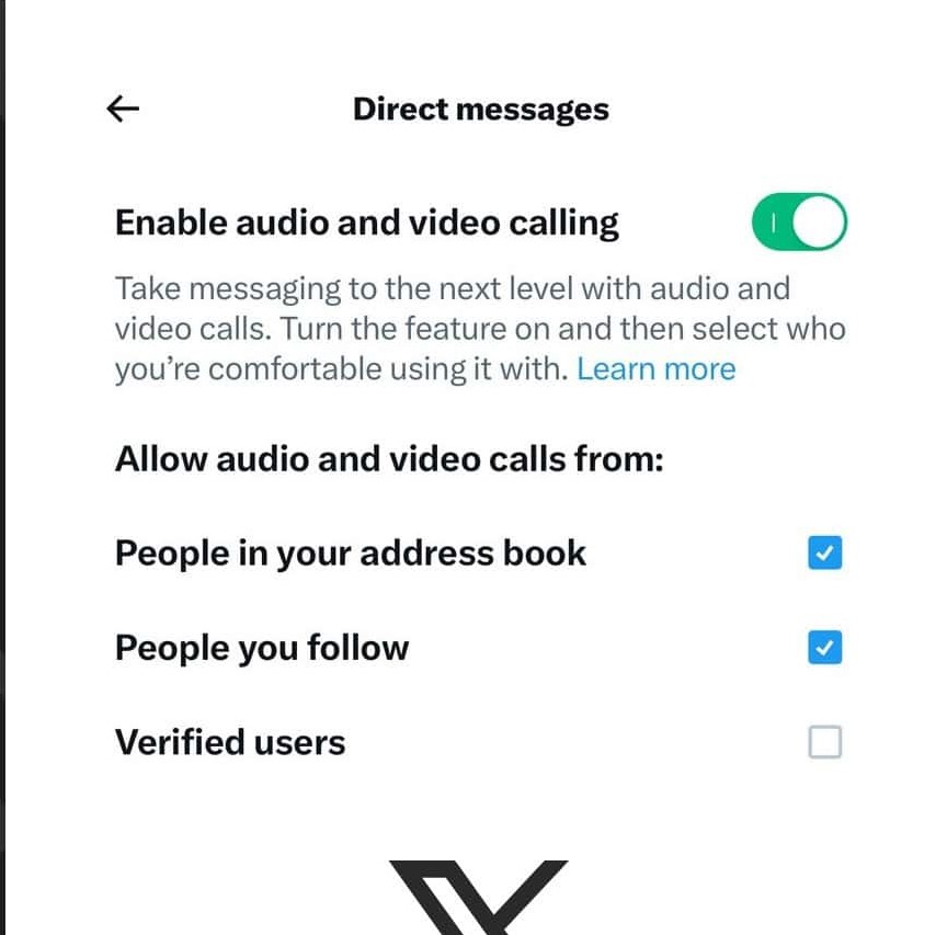 وتتيح إكس التحكم بالحسابات التي يمكنها التواصل معك عبر المكالمات، سواء الأشخاص في جهات الاتصال أو الأشخاص الذين تتابعهم أو أصحاب الحسابات الموثقة.