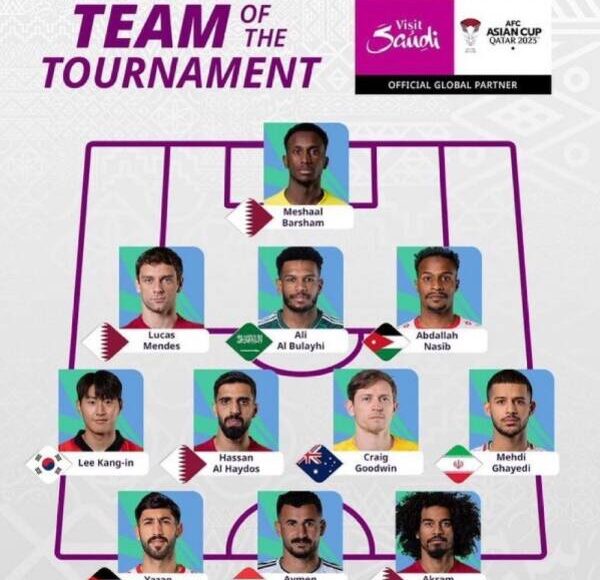 أعلنت اللجنة الفنية لكأس آسيا 2023، التشكيل المثالي لمنافسات البطولة، التي أقيمت على ملاعب قطر.