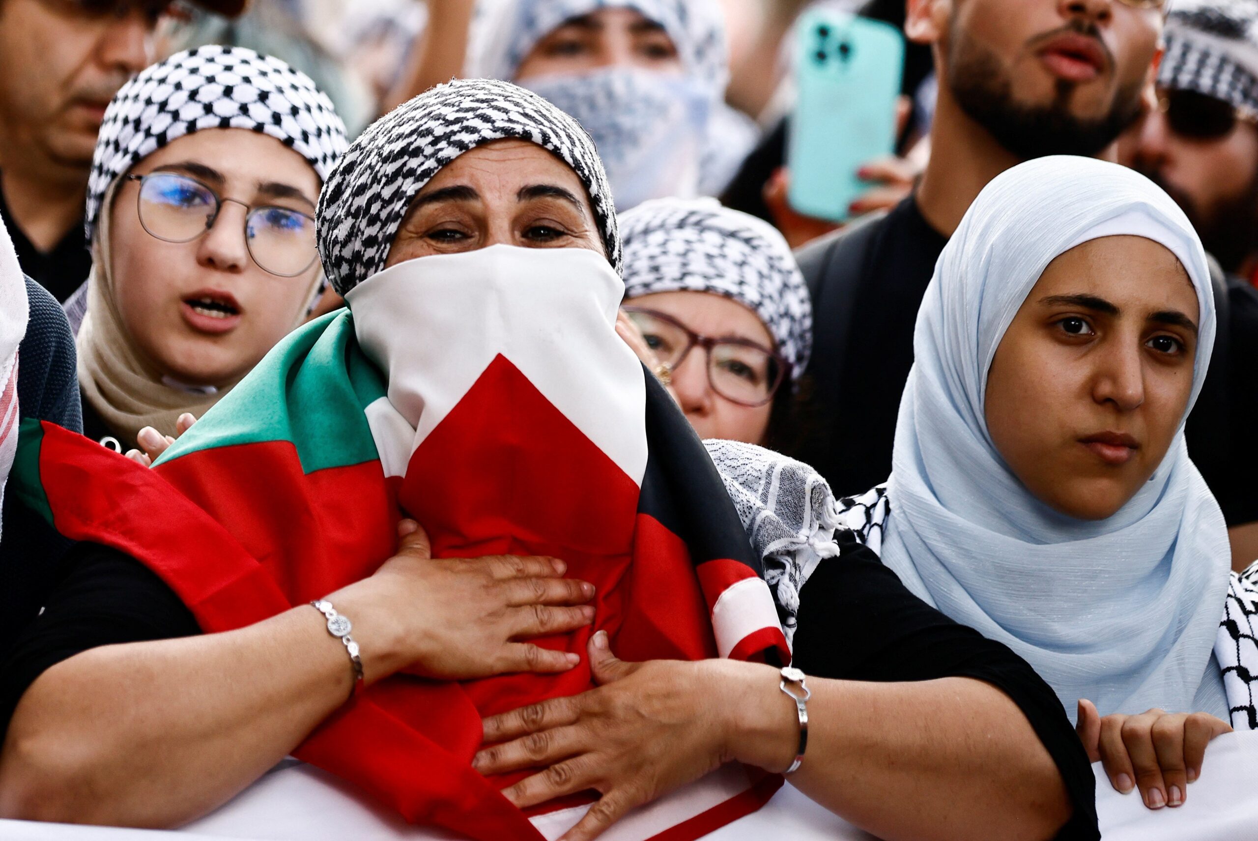 وقالت المتظاهرة كميل ريفويلتا “القوى العظمى لا تبذل جهدا كافيا في الوقت الحالي. ولهذا السبب نحن هنا: نحن ندعو إلى وقف إطلاق النار ونطالب بإعطاء الفلسطينيين حقوقهم في الوجود والعيش وحقوق الإنسان وجميع الحقوق التي نتمتع بها”.