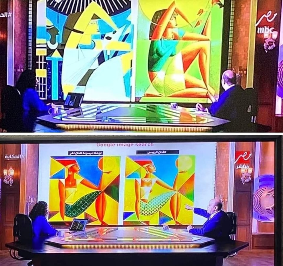 وتابعت: لو الفنان الروسي يدعي سرقتي لتصميماته يبقى هوا كمان سارق تصميمه من بيكاسو، مضيفة: لست فنانة تشكيلية ومن الوارد تشابه التصميم مع غيره طبقًا للتشابه في الأسلوب بالمدارس الفنية، لافتة إلى أن الفنان الروسي لم يوثق لوحاته عبر المنصة العالمية لتوثيق الأعمال الفنية.