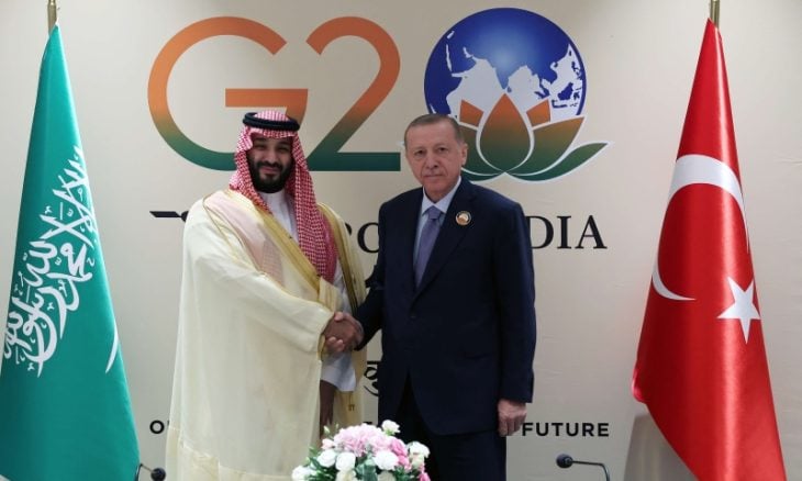وقال إردوغان، في مؤتمر صحافي في ختام أعمال قمة مجموعة العشرين في الهند وعقب لقائه ولي العهد السعودي الأمير محمد بن سلمان، إن بلاده مستعدة للقيام بكل ما يلزم من أجل تعزيز العلاقات مع السعودية في المجالات السياسية والاقتصادية والتجارية. وأن بلاده ستعمل مع السعودية والإمارات والعراق بشأن ممر السكك الحديدية والموانئ.